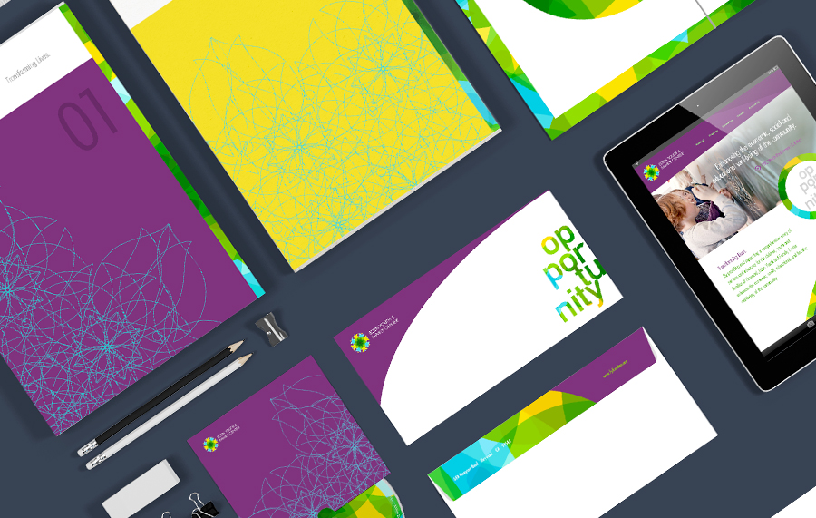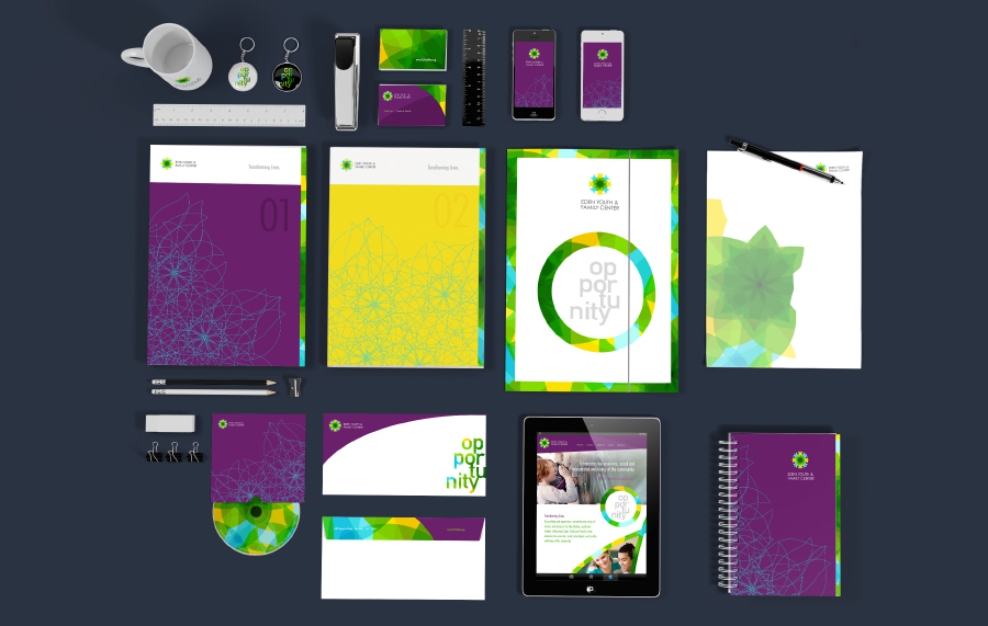This concept focuses on the human connectivity, open opportunities and diversity that are at the core essence of this vibrant nonprofit and brand. Using the EYFC logo as inspiration, this concept uses vivid patterns that highlight the depth of the human connection and the vibrancy of it’s people. Black and white photography of authentic diverse families provide impact and drama while the addition of color photography is used for storytelling purposes. Full-color images highlight “real people” in environments that are open and reflect the opportunities that EYFC provides to the community. Bold typography used to call out key themes and ideas is also used as a device to propel the messaging across customer touchpoints. This concept is vibrant, unique and embedded with compelling storytelling that reflects EYFC’s rich history and the inspirational service they provide to the people in their community.